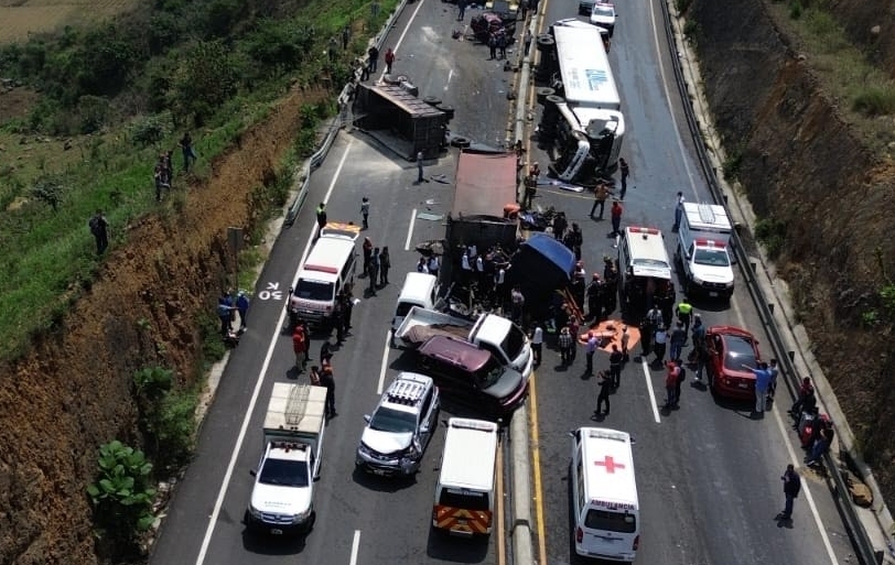 12 vehículos particulares y de transporte pesado se vieron involucrados en un accidente de tránsito en el kilómetro 59 del Libramiento de Chimaltenango.