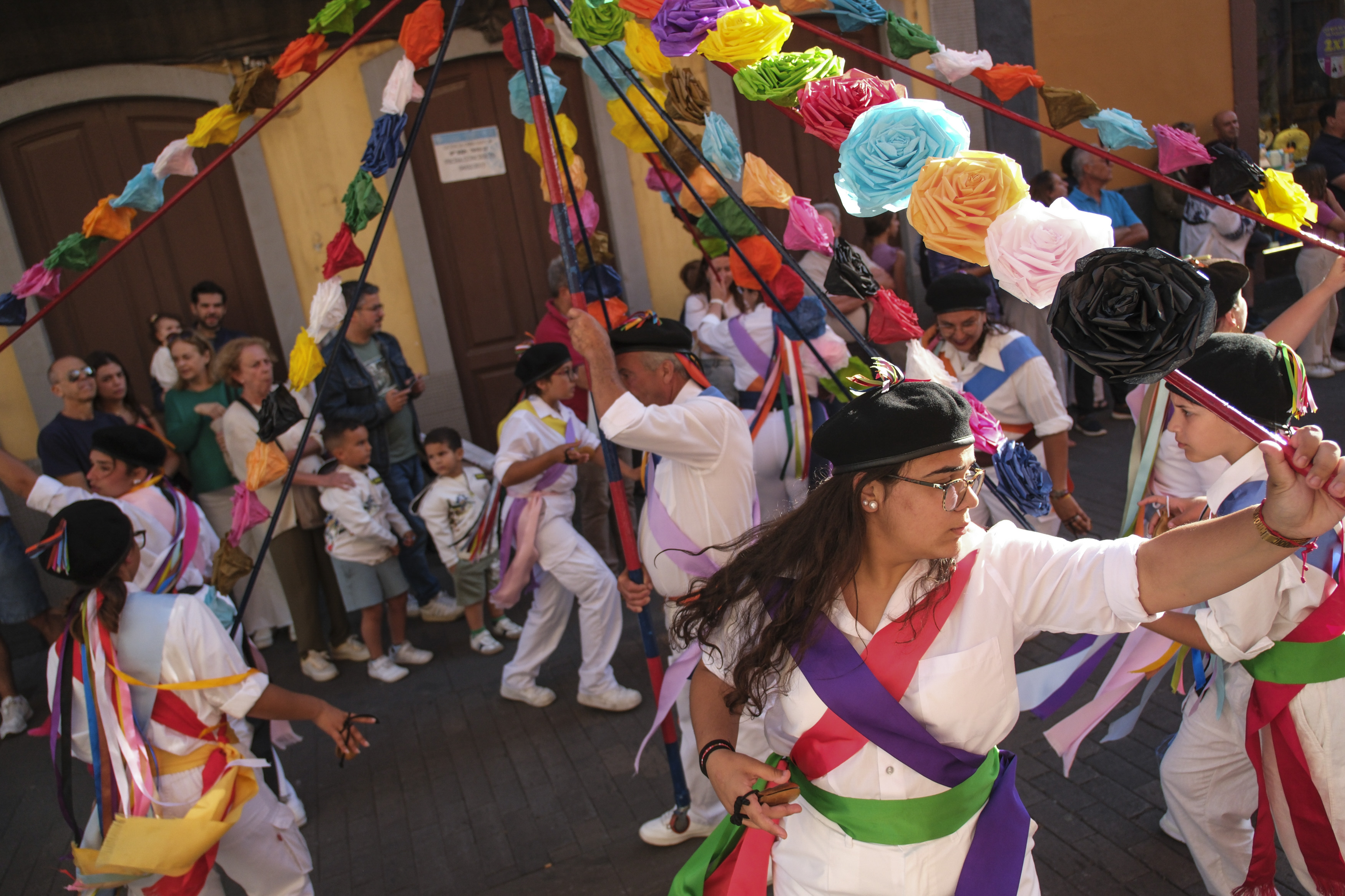 Más de seiscientas personas de doce colectivos de las Islas Canarias participan en el desfile Diablos y Tarasca, por las calles del casco histórico de La Laguna en Tenerife. (Foto Prensa Libre: EFE)