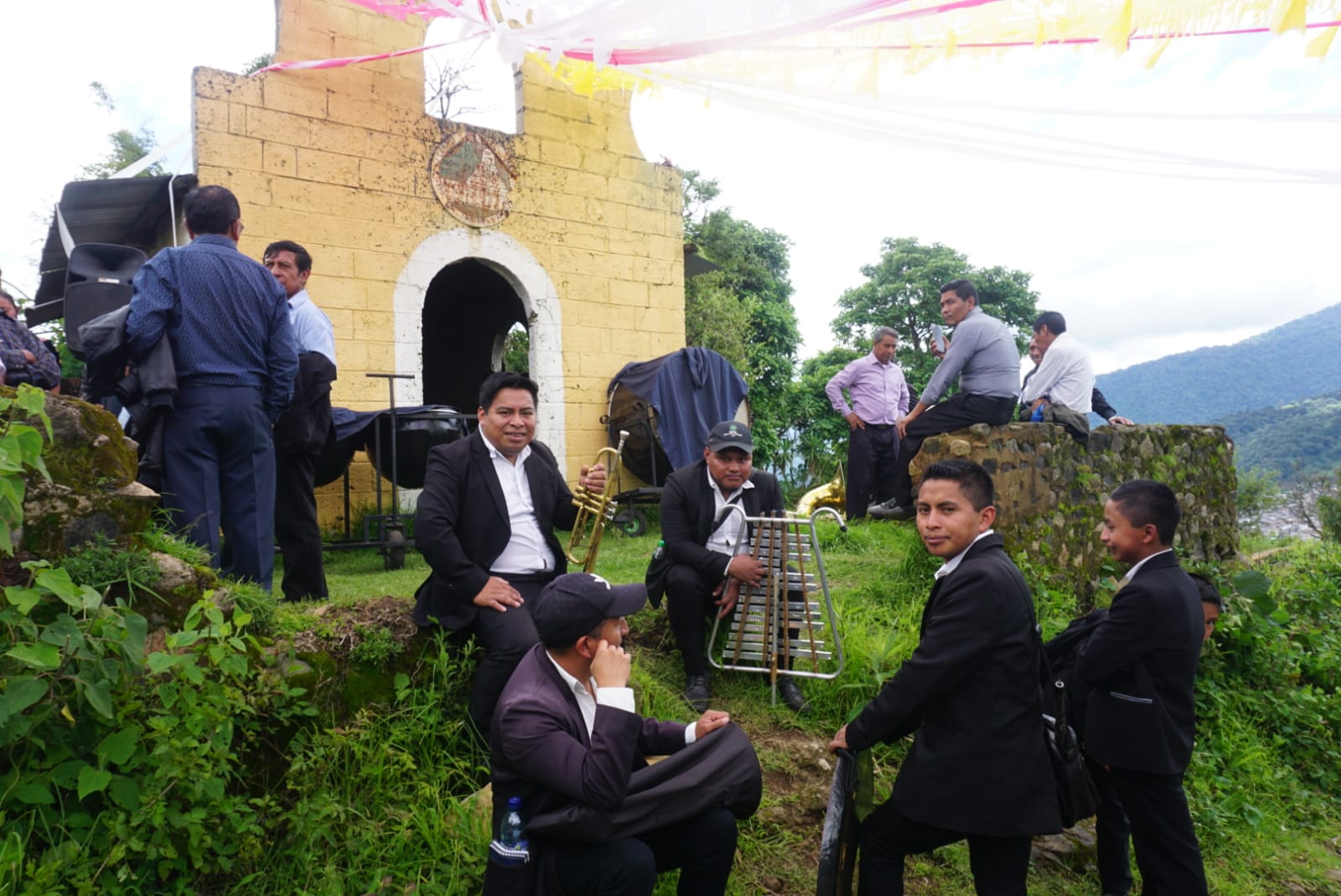 Los músicos esperaron en la iglesia de Santa María de Jesús para la llegada de la imagen. (Fotografía Prensa Libre: Daniel Samayoa)