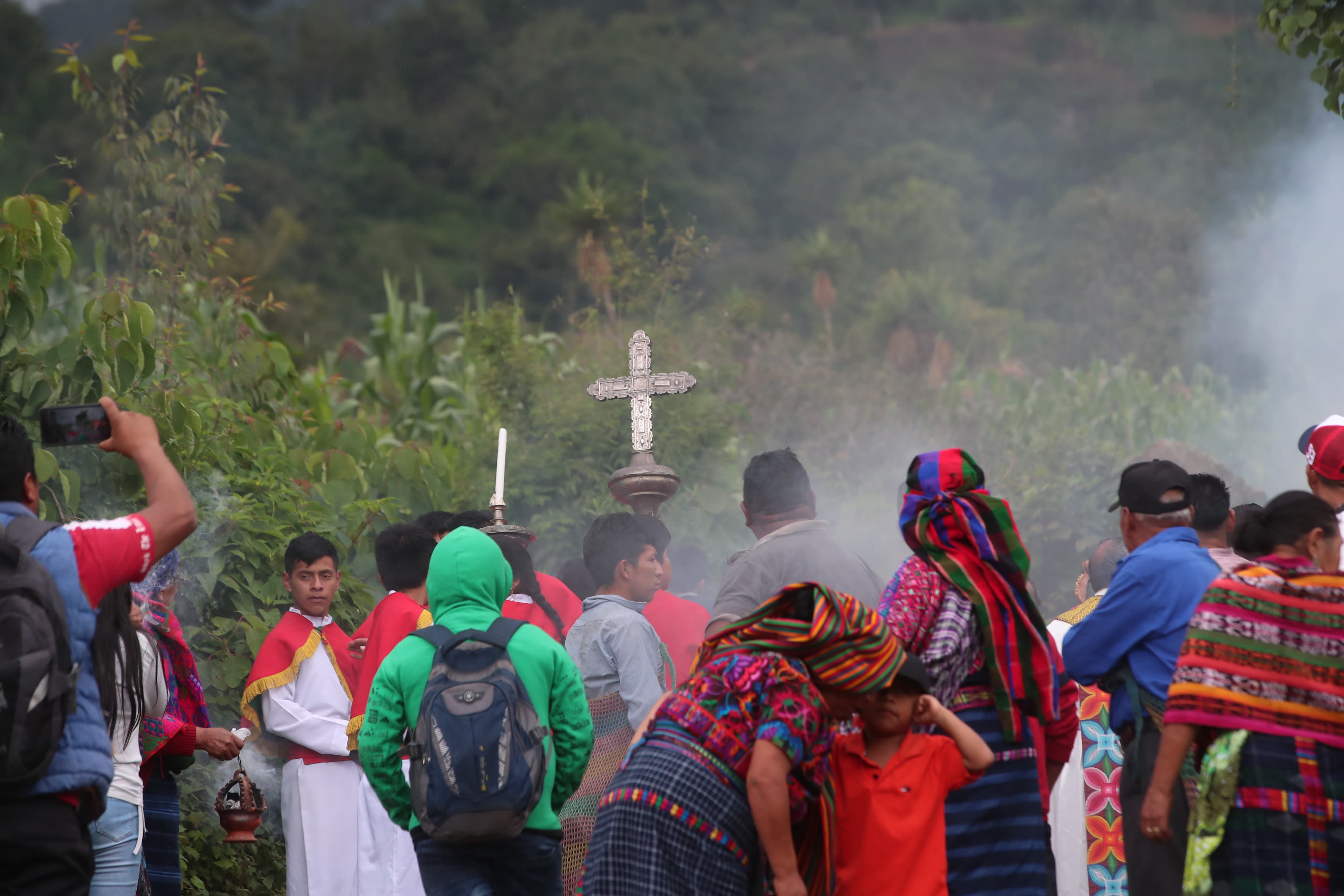 Las diferentes cofradías del lugar esperaron la llegada de la imagen de Cristo de las Alturas para darle la bienvenida. (Fotografía Prensa Libre: Byron Rivera Baiza)