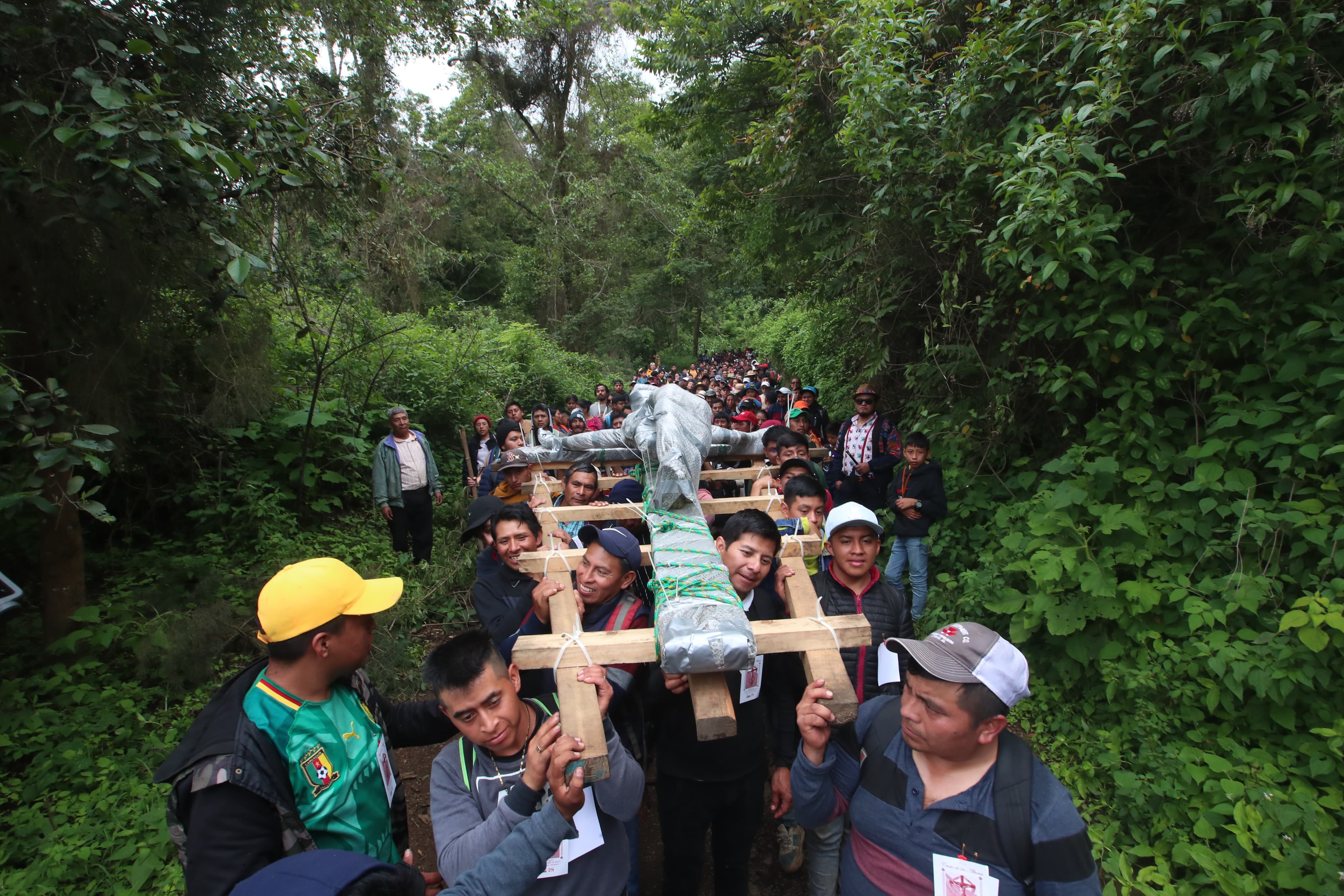 El descenso de la imagen del Cristo de las Alturas comenzó desde las 6 horas e este domingo y tomó más de cinco horas. (Fotografía Prensa Libre: Felipe Rucal)