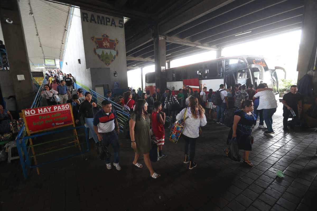 Decenas de personas llegan a la Central de Mayoreo Sur (CENMA) para poder abordar buses hacia la Costa Sur. Desde muy tempranas horas empezaron a llegar para poder viajar a sus departamentos. (Foto Prensa Libre: Erick Avila)