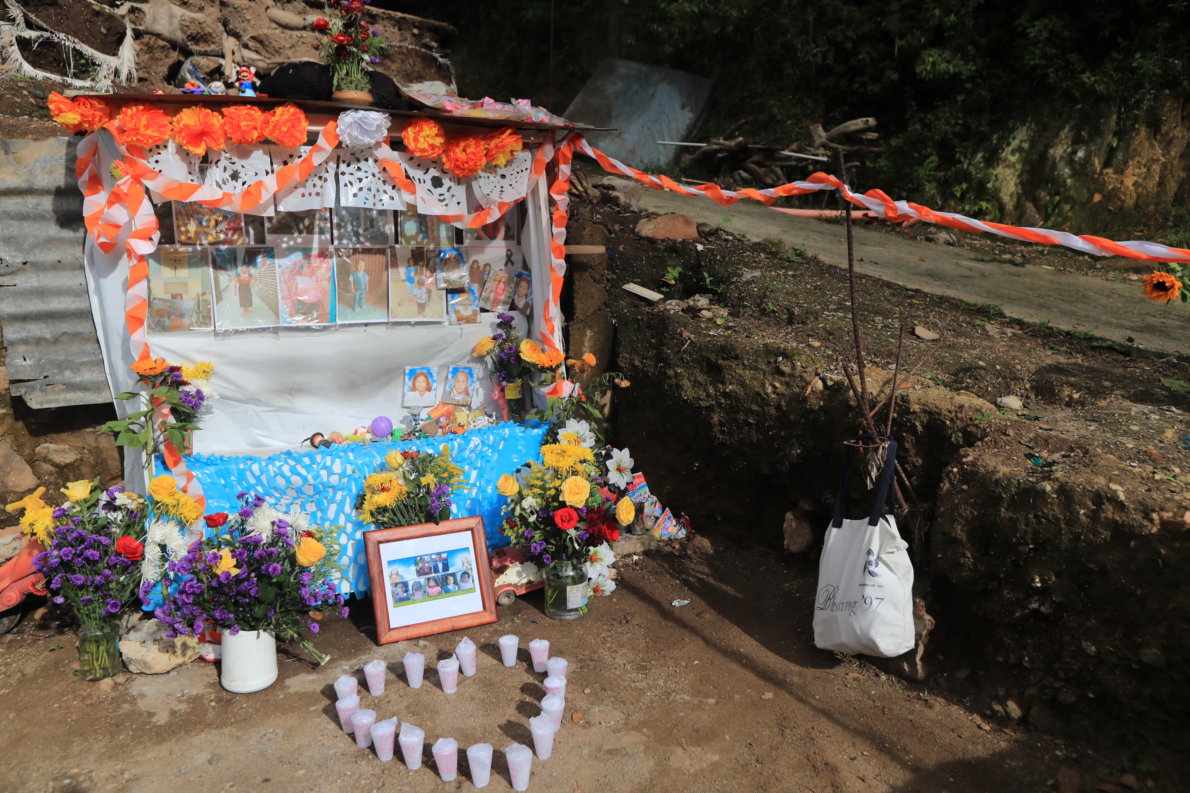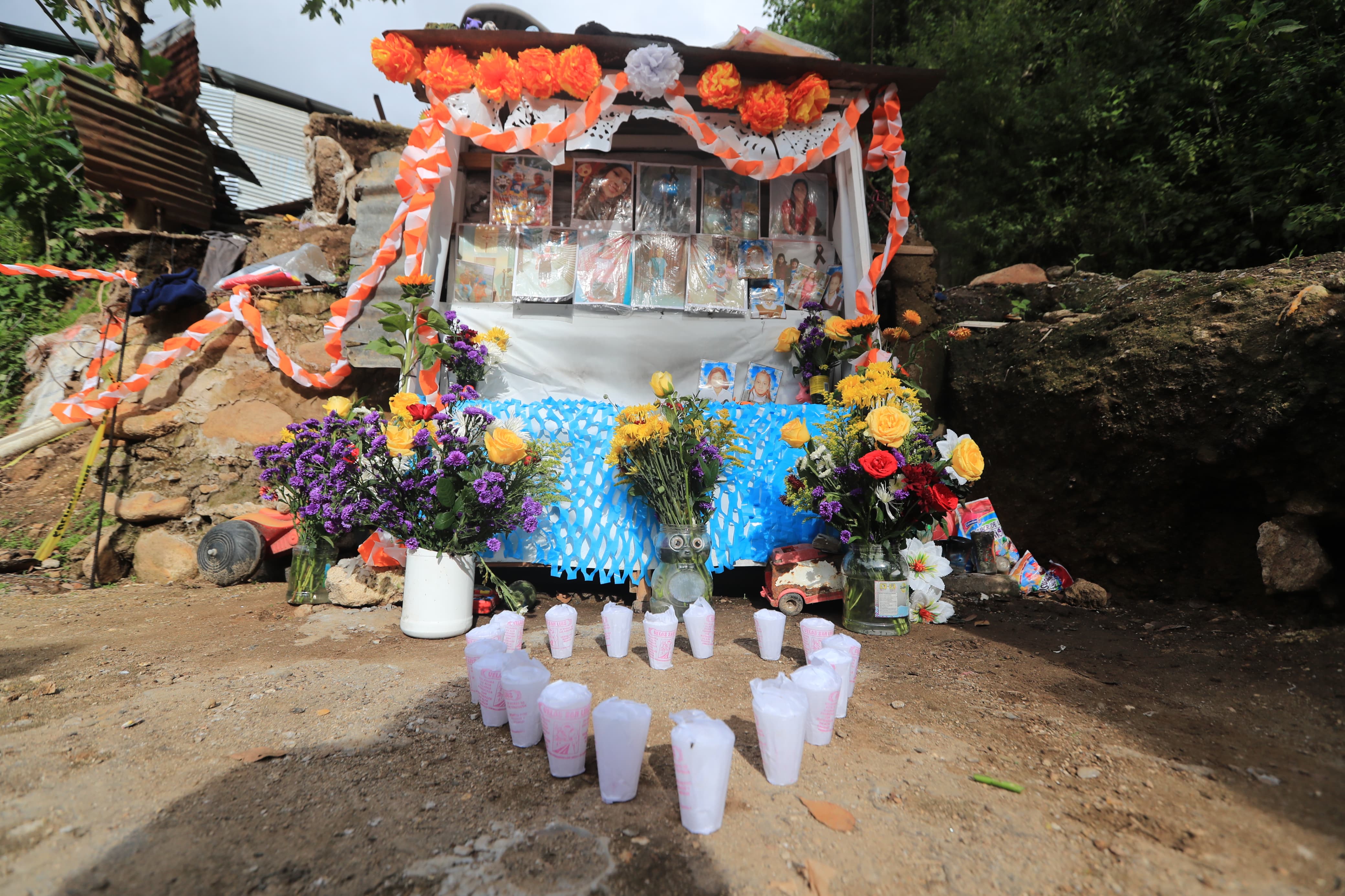 Un pequeño altar tiene fotografías de las personas que fallecieron en la tragedia. (Foto Prensa Libre: Elmer Vargas)