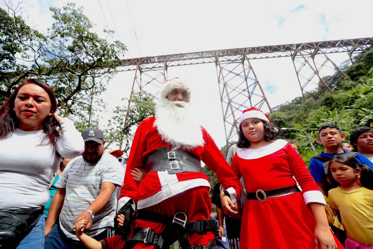 El mayor Héctor Chacón de los Bomberos Municipales personifica nuevamente a Santa Claus y lleva regalos a los niños que viven bajo el puente Belice.