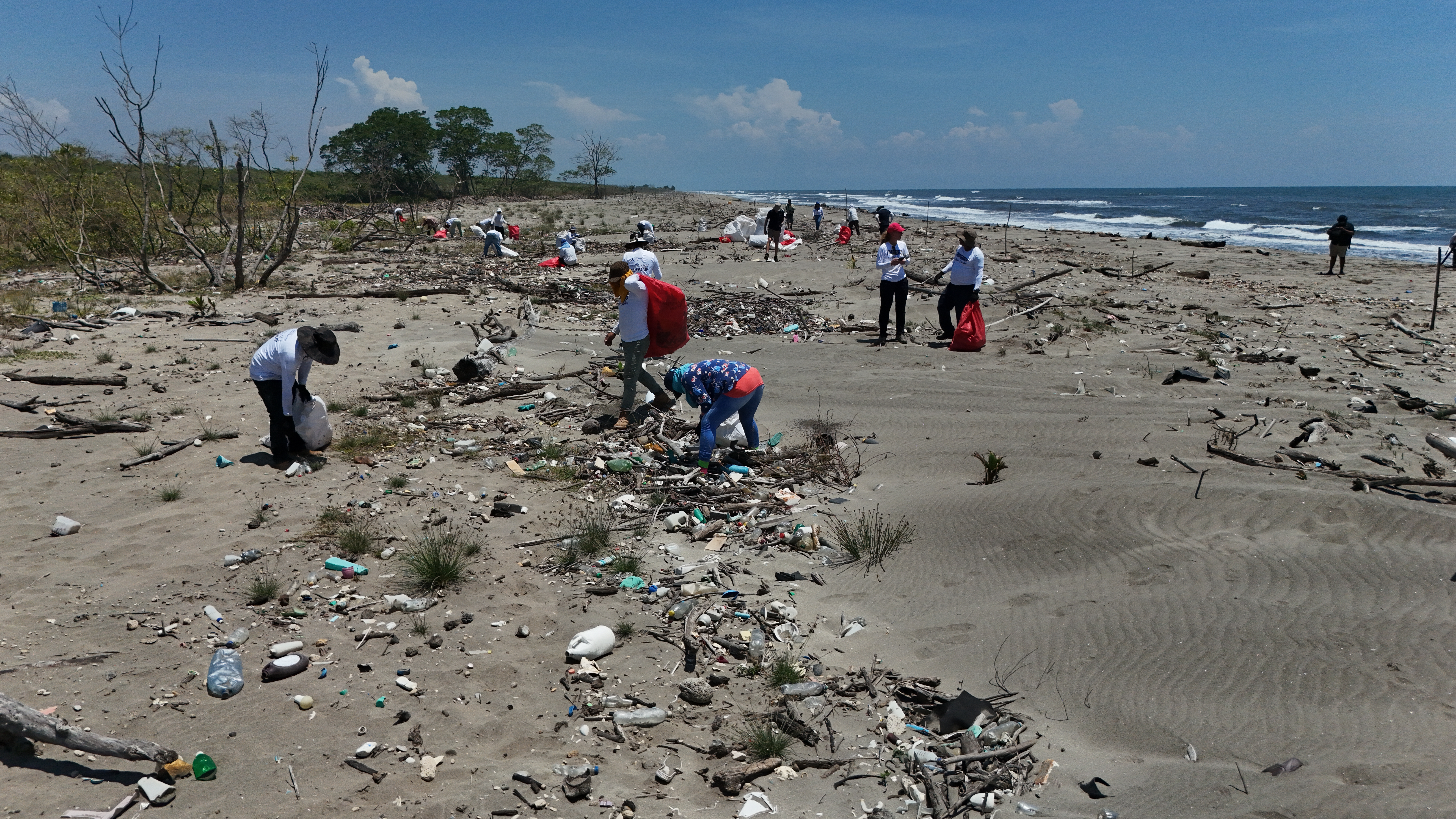 Voluntarios recogen basura a diario en las orillas del río Motagua. Su trabajo es esencial para evitar que llegue al mar. Sin ellos, el Caribe estaría completamente cubierto de desechos. (Foto Prensa Libre: Oscar Vásquez Mijangos)