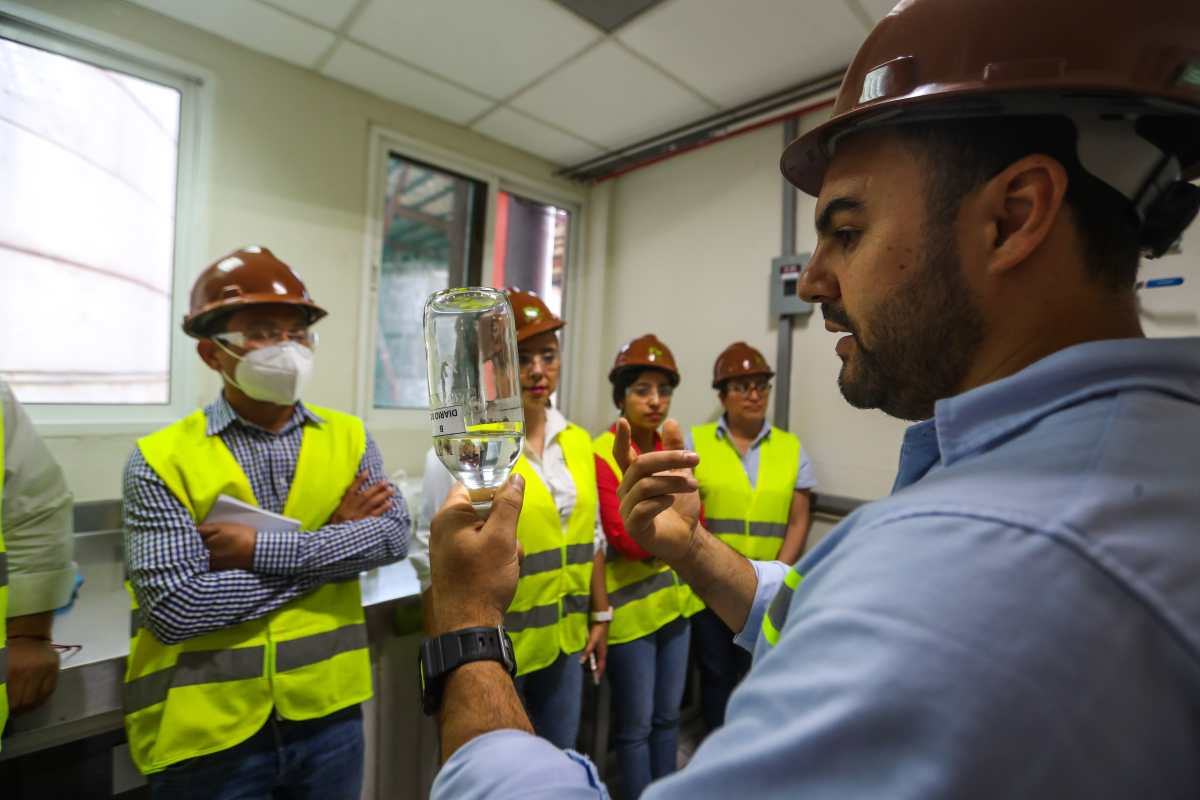 “Se aprovecha al máximo la materia prima y se genera una economía circular”, explicó Aida Lorenzo de Juárez, gerente de la Asociación de Combustibles Renovables. Añadió que, tras la obtención de melaza, se inicia la fermentación, destilación y deshidratación, hasta lograr una pureza del 99.6% para uso como biocombustible. (Foto Prensa Libre: Juan Diego González)