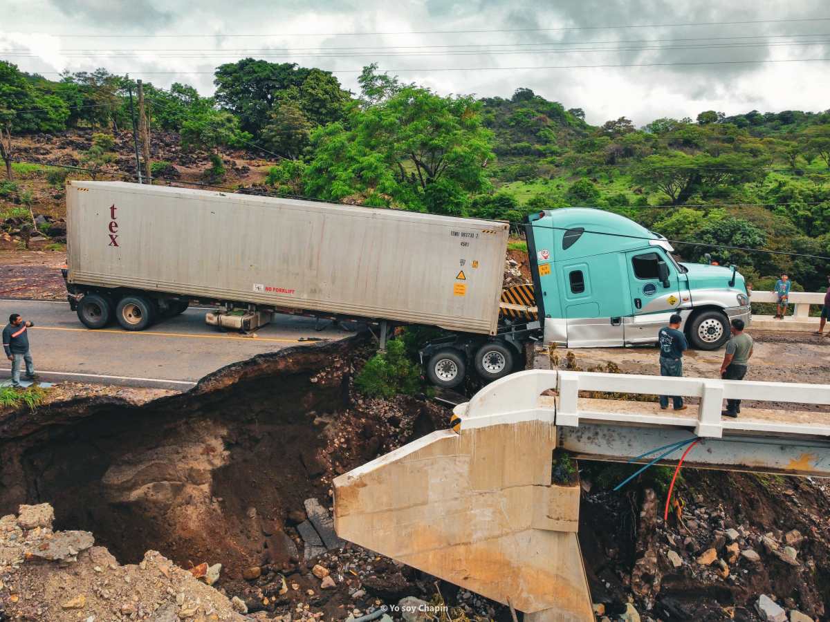 El colapso del puente El Colorado, ubicado en el kilómetro 128 de la ruta CA – 1 Oriente en El Progreso, Jutiapa, provocó un socavamiento causado por las intensas lluvias recientes. (Fotografía cortesía: Otto Salguero/Yo soy Chapín)