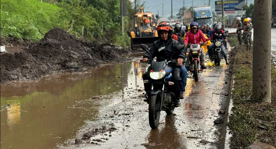 Áreas como la autopista de Palín, Escuintla, en el kilómetro 39, son monitoreadas por el Ejército de Guatemala, debido a las fuertes lluvias. (Fotografía Prensa Libre: Ejército de Guatemala)