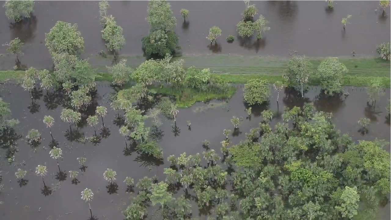 Áreas inundadas de Chiquimulilla, Santa Rosa, tras días de fuerte lluvia. (Fotografía Prensa Libre: Erick Avila)