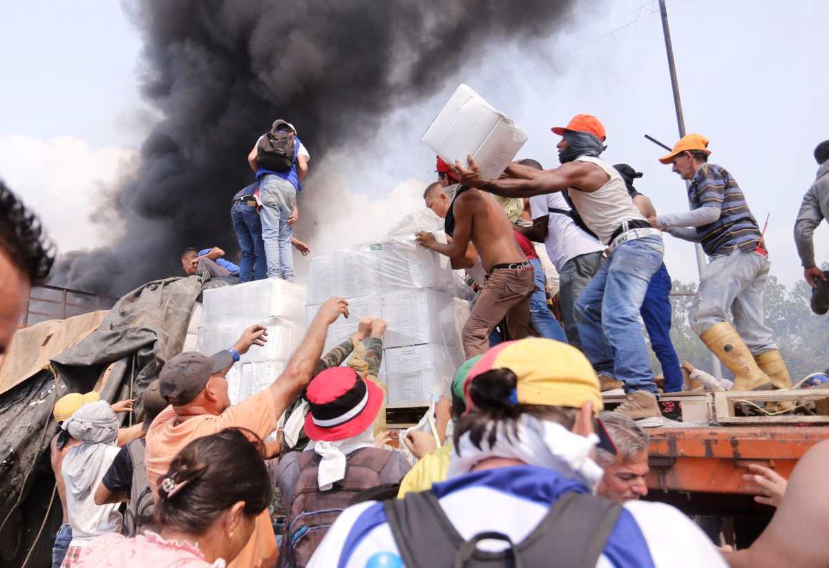 Mientras se realizan enfrentamientos entre la guardia bolivariana y venezolanos, la ayuda internacional ingresó por Brasil.