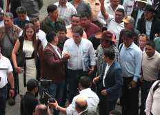 Alcaldes caminan por el Centro Histórico para pedir que el presidente Bernardo Arévalo sancione el Decreto 7-2025