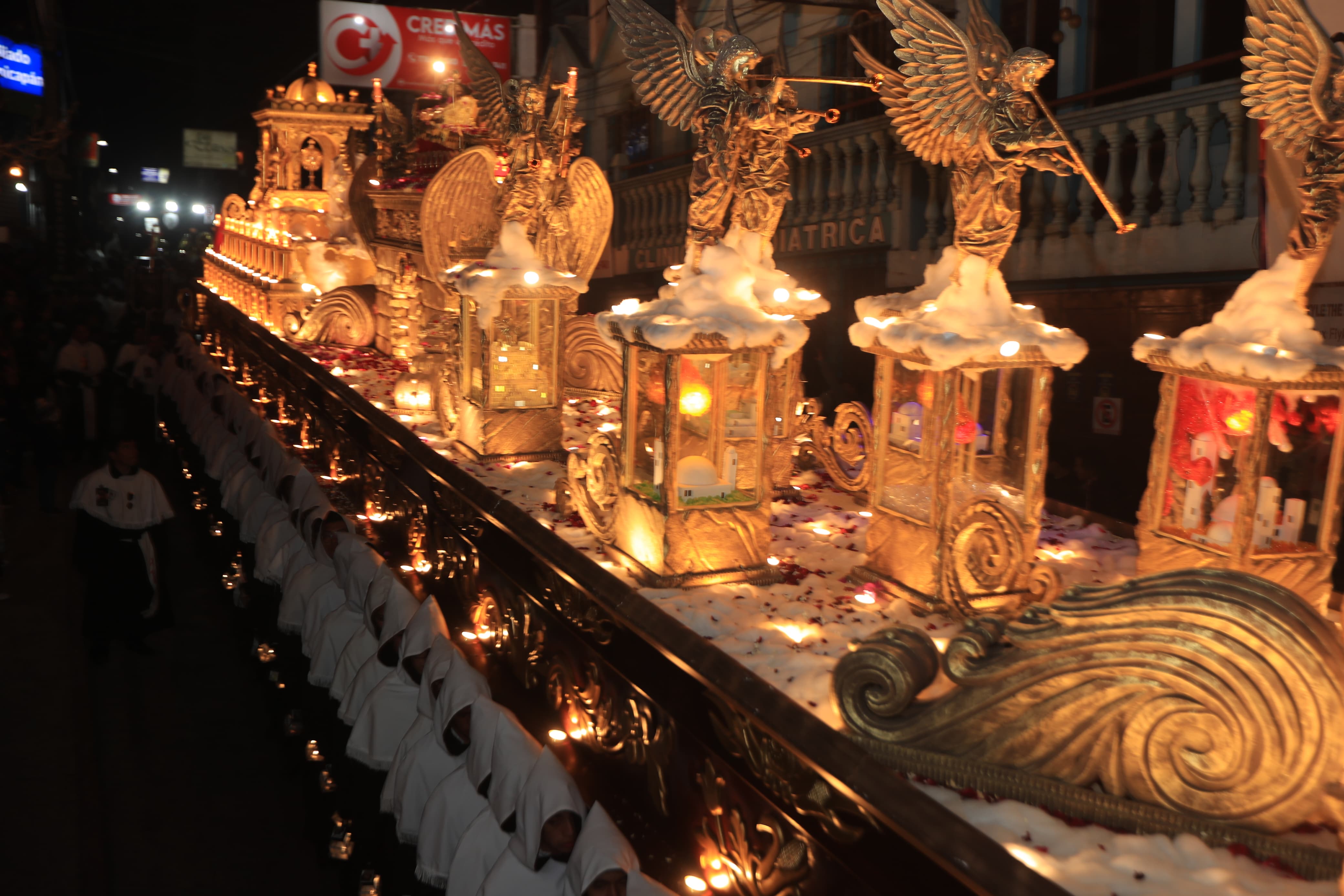 Las siete plagas del Apocalipsis es representada en el adorno del anda procesional. Fotografía Prensa Libre: Oscar Vásquez Mijangos.