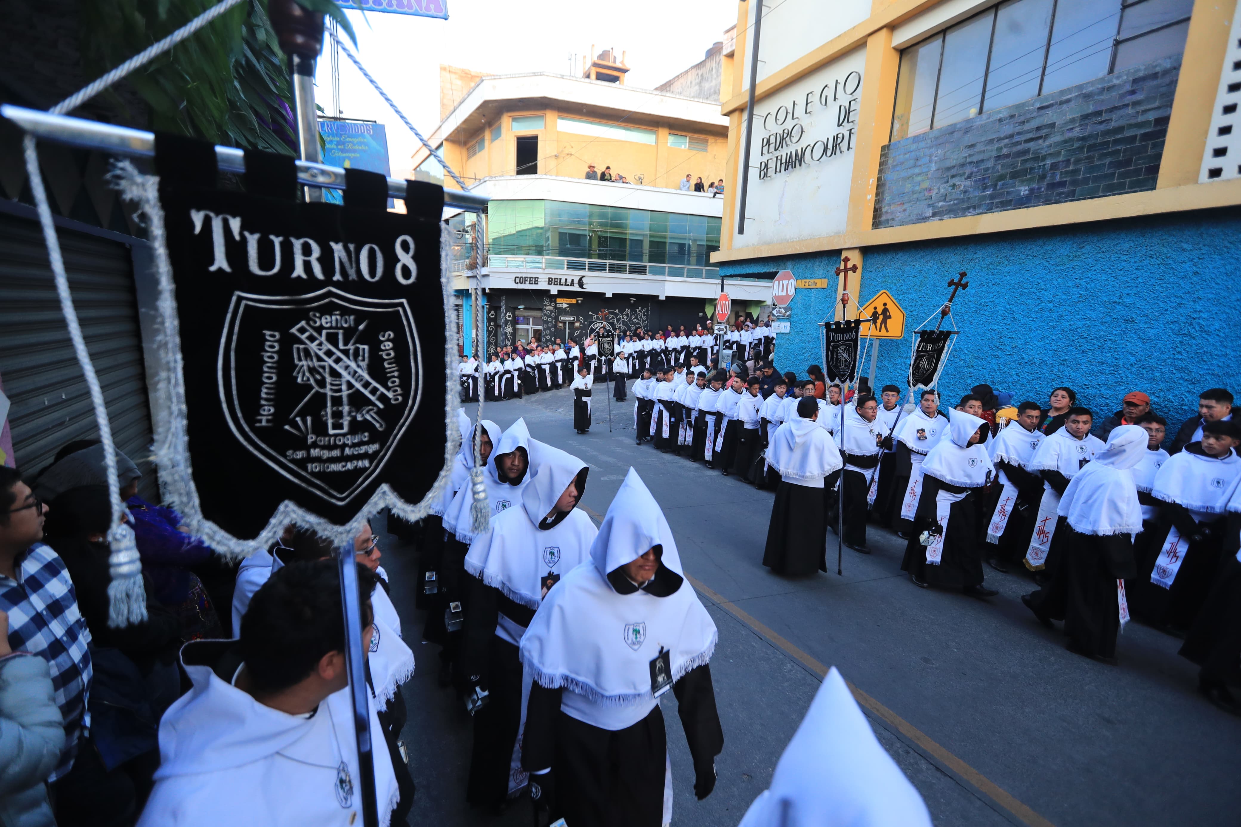 Más de mil devotos visten el traje de cucurucho que caracteriza a la Hermandad del Señor Sepultado. Fotografía Prensa Libre: Oscar Vásquez Mijangos