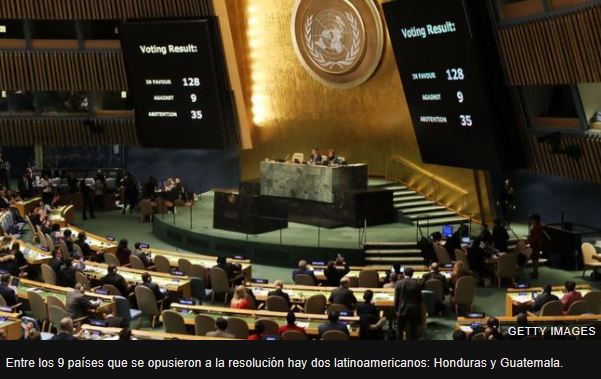 Se trata de Honduras y Guatemala, que se colocaron en las antípodas de los 10 países de la región que condenaron abiertamente la decisión de Washington como parte de una abrumadora mayoría de 128 naciones.