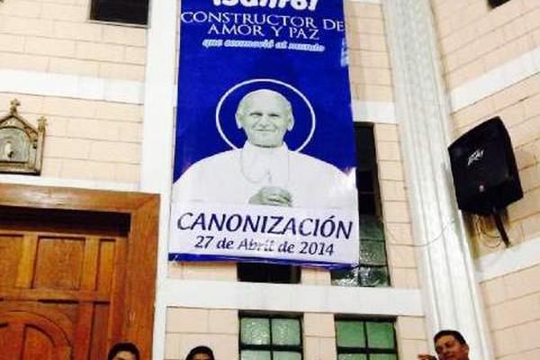 ESCUINTLA – Cientos de católicos participaron en esta cabecera en una misa y llevaron en hombros la imagen de Juan Pablo II, la cual era acompañada por una imagen impresa del también canonizado Juan XXIII.