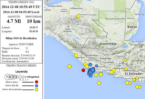 En el transcurso del día el Insivumeh siguió reportando sismos de 3.7 hasta 4.8, de magnitud algunos fueron sensibles por la población. El epicentro de la actividad se centró frente a la Costa del Pacífico en los departamentos de Suchitepéquez y Escuintla.