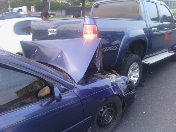 Horas antes el paso vehicular estuvo afectado en la 46 calle de la calzada Raul Aguilar Batres, zona 12, debido a que un vehículo se empotró en la parte trasera de un picop, quienes viajaban en los automóviles presentan golpes leves dijeron los paramédicos.