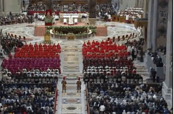 En en la basílica de San Pedro, a una sola voz cantan el Padre Nuestro.