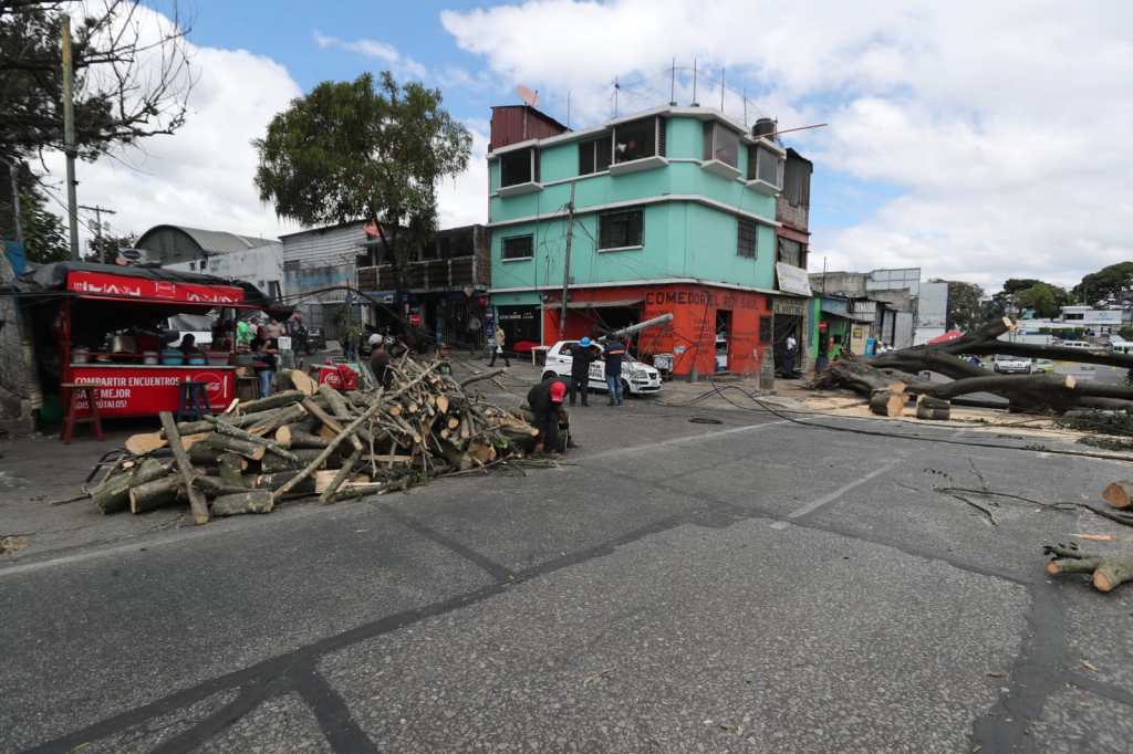 Los Bomberos Voluntarios fueron requeridos este lunes 20 de febrero a la avenida La Castellana, en un crucero entre las zonas 8 y 9, por un árbol que cayó y causódestrozos.