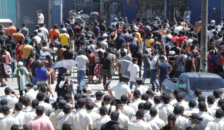 La situación se tornó tensa el 19 de agosto, cuando un grupo de supuestos vendedores de La Terminal, algunos armados con palos, intentó disolver una manifestación que se desplazaba en la Calle Martí, donde un grupo de personas exigía la renuncia del presidente Giammattei y de la fiscal general Consuelo Porras.