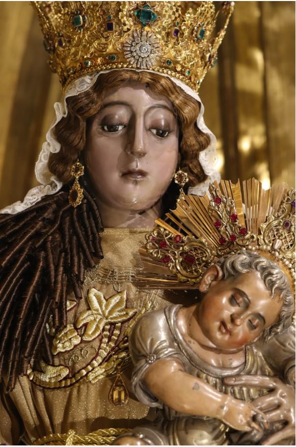 La Virgen del Rosario está hecha de plata y recibe el tributo de los feligreses en el mes de octubre en su camarín y ha salido en procesión pocas veces, generalmente es una réplica la que sale a recorrer las calles.