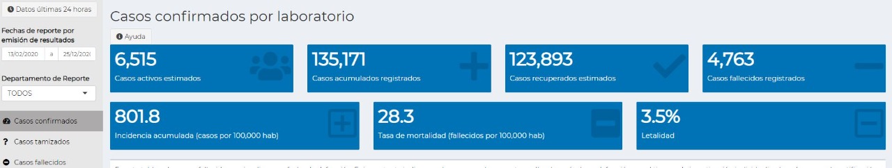 El Ministerio de Salud actualizó la cifra de casos de coronavirus detectados hasta las 23.59 horas del 25 de diciembre.