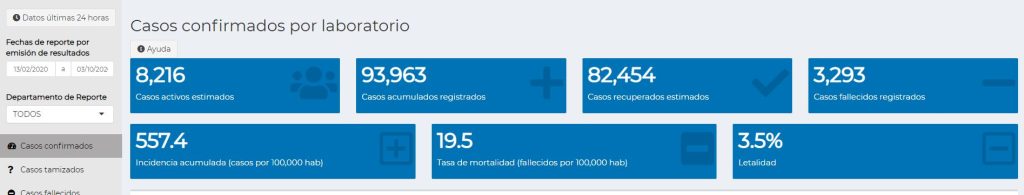 El reporte diario de casos nuevos, fallecidos y recuperados se toma del apartado “datos últimas 24 horas” del tablero del Ministerio de Salud. Aunque las cifras pueden variar durante el día.