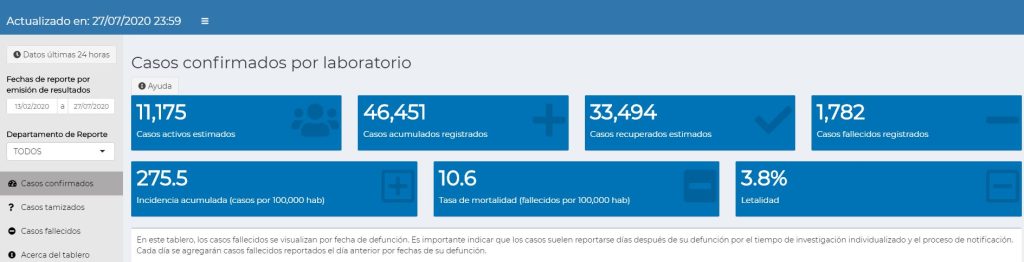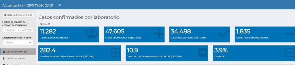 #Actualizacion| #MSPAS informa este 29 de julio de 2020 los casos confirmados por laboratorio y datos de las últimas 24 horas en el tablero Situación #COVID19 en Guatemala.