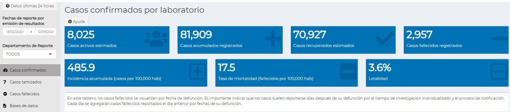 La cifra total de contagios asciende a 81 mil 909 casos desde que fue detectada la enfermedad, el 13 de marzo del 2020.