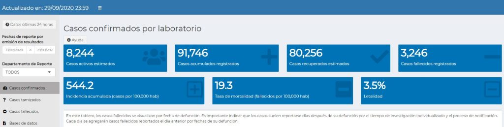 El total de casos detectados desde el 13 de marzo último es de 91 mil 746 personas infectadas, de las que se han recuperado 80 mil 256 y ocho mil 244 continúan con la enfermedad.