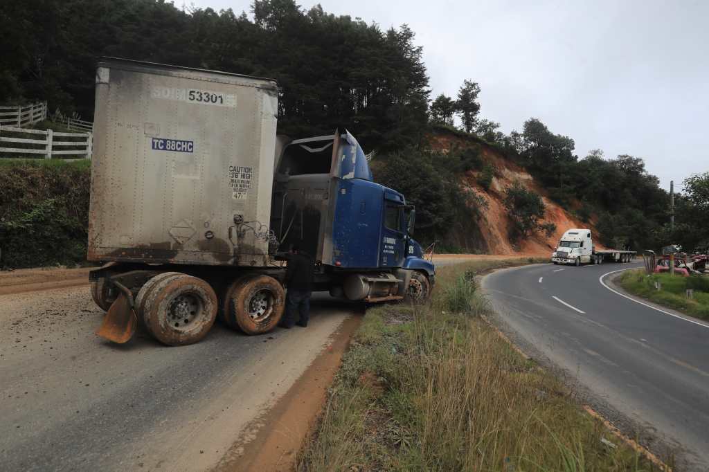 El derrumbe se registró en Agua Escondida, Quiché, causó que un tráiler derrapara cuando el piloto intentó frenar.