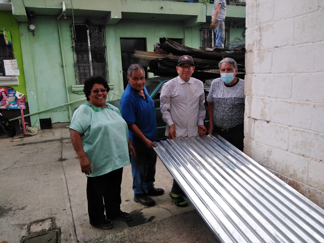 Herminia Diéguez entrega láminas que les fueron donadas, a través de sus gestiones, a vecinos. (Foto Prensa Libre, cortesía de Herminia Diéguez)