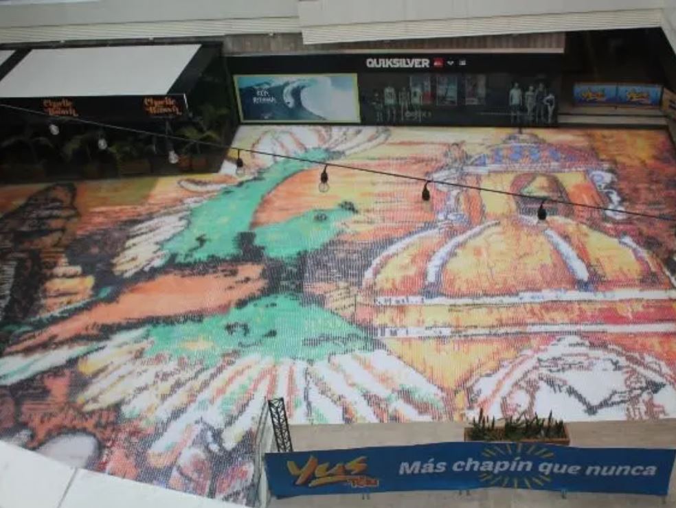 Para su elaboración, de 603.47m² se utilizaron más de 118 mil 280 vasos para crear elementos icónicos de Guatemala.