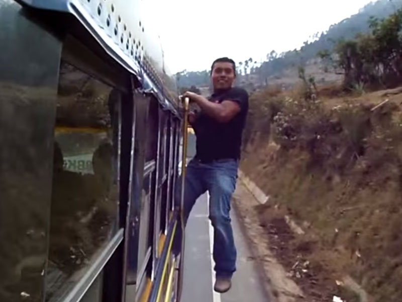 En un video compartido por el estadounidense Gabriel Traveler, en el cual documenta su visita a Guatemala, se muestran las acrobacias que realizan estos ayudantes para acomodar toda la carga posible en la parrilla del bus.