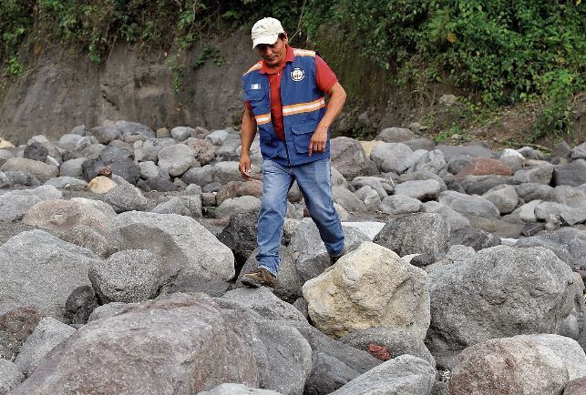 Barrios guía el recorrido en los márgenes de la barranca de Santa Teresa, una de las rutas que suele monitorear luego de una actividad volcánica. Entre el verde intenso una franja grisácea resalta, es la ruta de los flujos piroclásticos, los restos incandescentes de ceniza, arena, piedras que expulsa el volcán y que corren a cientos de kilómetros por hora.