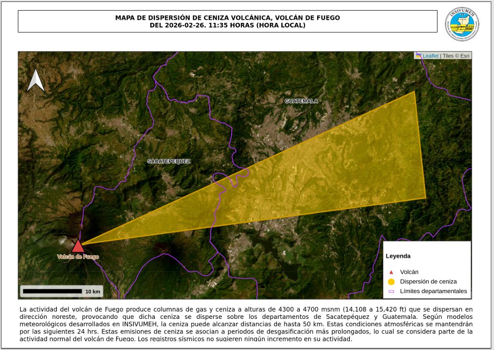 El Insivumeh informa cómo continúa la actividad del volcán de Fuego este 26 de febrero