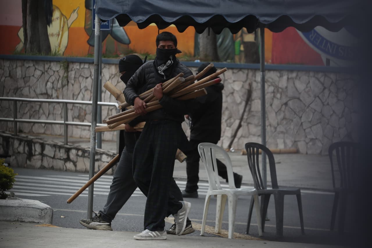 Docentes y estudiantes que participan en la protesta aseguran que las personas encapuchadas “no son estudiantes” y señalan que la toma estaría siendo orquestada por el rector, Walter Mazariegos, a quien acusan de buscar su reelección en medio de cuestionamientos dentro de la comunidad universitaria.