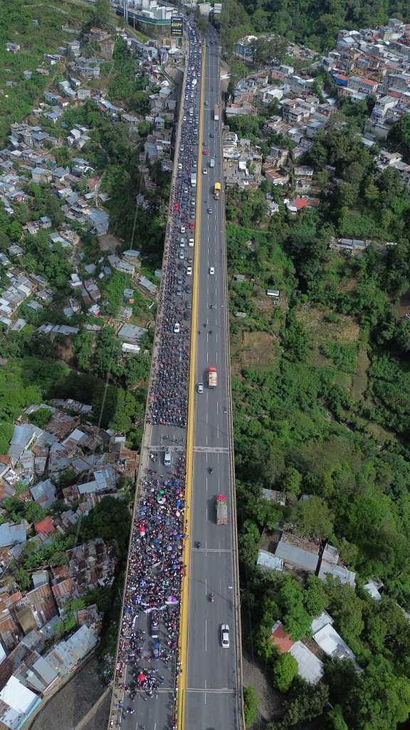 La Policía de Tránsito de Mixco informa que manifestantes se desplazan sobre el puente de la calzada Roosevelt con dirección al centro histórico de la ciudad capital.
