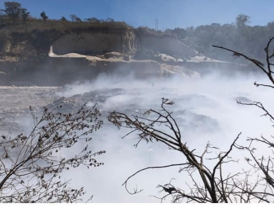 #IncendioAmsa | Decenas de camiones con desechos permanecen en los alrededores del vertedero de Amsa, luego de que autoridades permitieran su funcionamiento al haber sofocado el incendio.