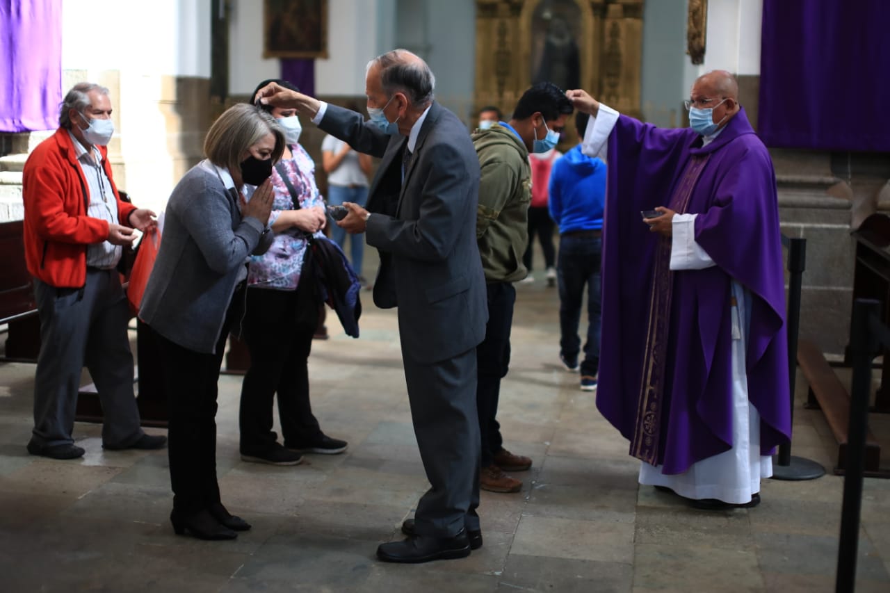 Fue específicamente en la iglesia de La Merced en Antigua Guatemala donde el sacerdote prefirió imponer la ceniza con mayor distancia y sobre la cabeza de los fieles, aunque en otros centros religiosos el procedimiento fue parecido a años anteriores previo a la aparición del covid-19.