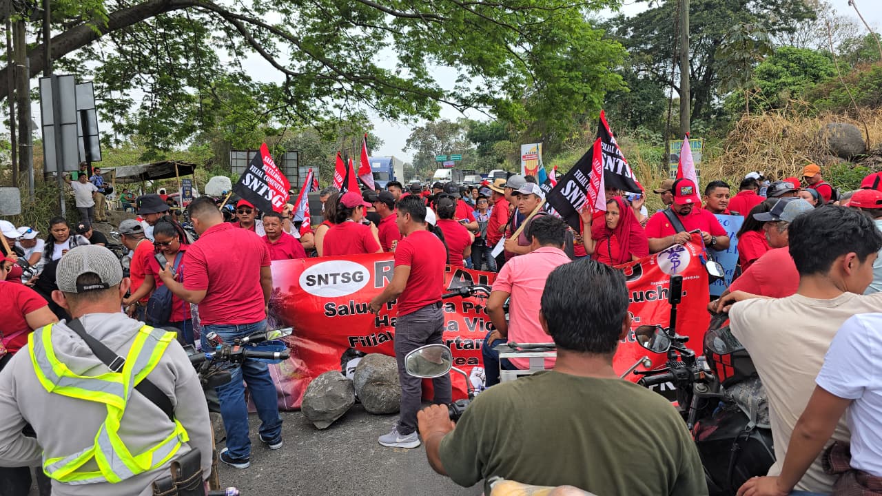 Integrantes del Sindicato Nacional de Trabajadores de Salud efectúan este viernes 13 de marzo movilizaciones en distintos puntos del país. Según Provial, se reportan bloqueos de carreteras.