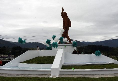 El monumento, creado por el artista quetzalteco Eduardo Sac, fue erigido al final de la autopista Los Altos, que libra el paso a Cuatro Caminos, en el km 190.