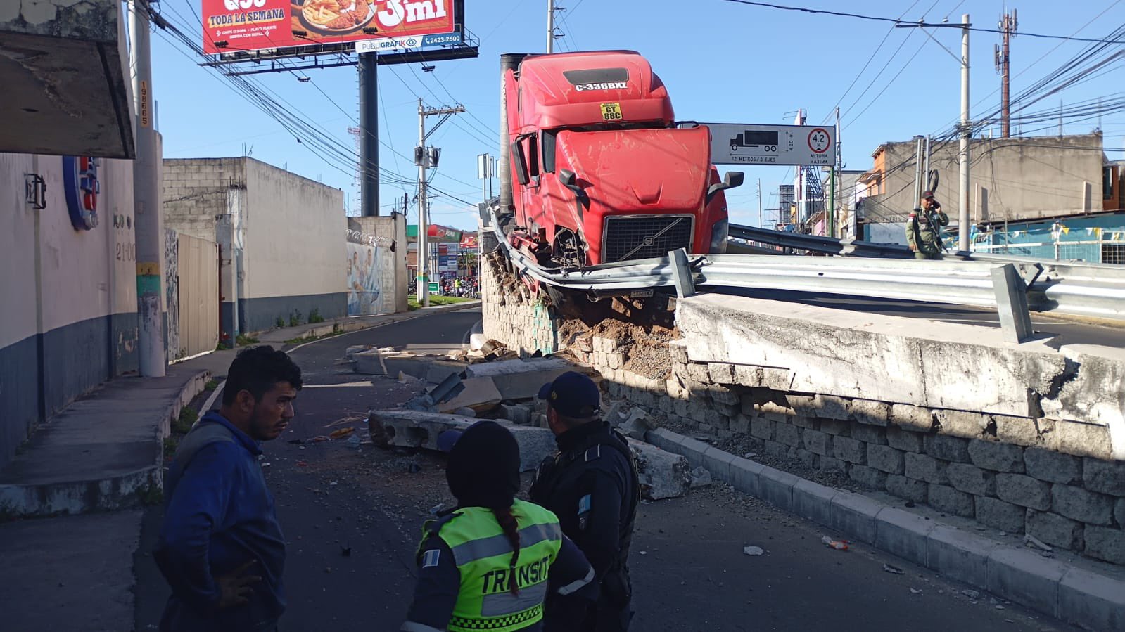 La Policía Municipal de Tránsito de San Miguel Petapa, informó que el percance ocasionó una serie de daños en el desnivel, por lo que aún se está trabajando en las reparaciones. Según la institución aún se está evaluando si es viable reestablecer el paso de vehículos.