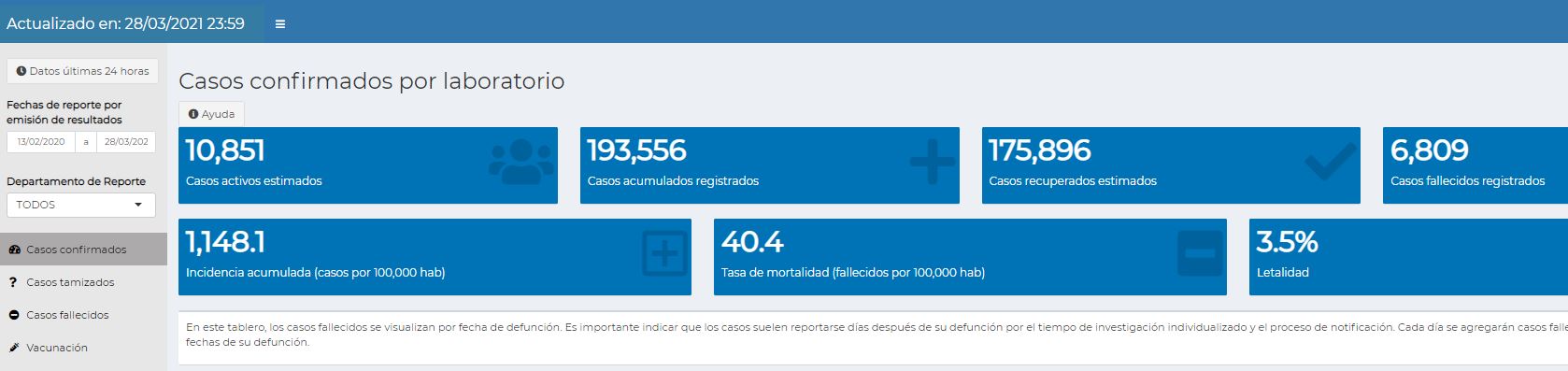 Esta última actualización corresponde al 28 de marzo de las cero a las 23.59 horas.