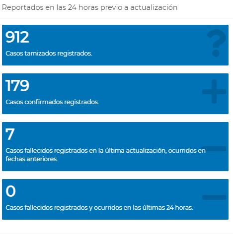 El reporte diario de casos nuevos, fallecidos y recuperados se toma del apartado “datos últimas 24 horas” del tablero del Ministerio de Salud, aunque las cifras pueden variar durante el día.