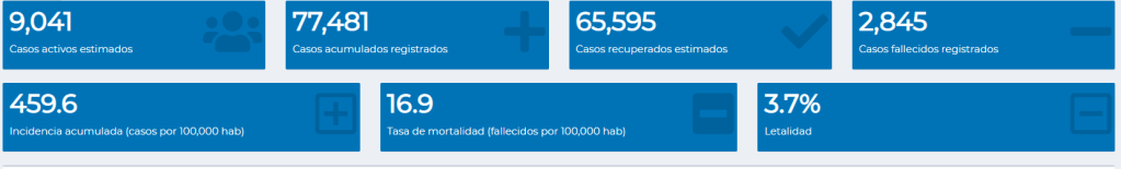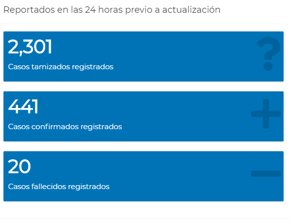 El reporte diario de casos nuevos, fallecidos y recuperados se toma del apartado “datos últimas 24 horas” del tablero del Ministerio de Salud. Aunque las cifras pueden variar durante el día.