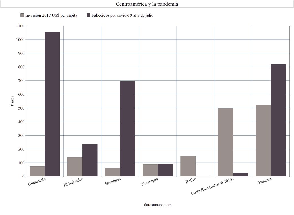 De esa cuenta el resultado en los países de la región es que aquellos que menos invierten en salud son los que más problemas enfrentan ahora por la pandemia y en donde hay más fallecimientos, pese a que casi todos tomaron medidas de prevención mucho antes de que la pandemia llegara a Centroamérica.