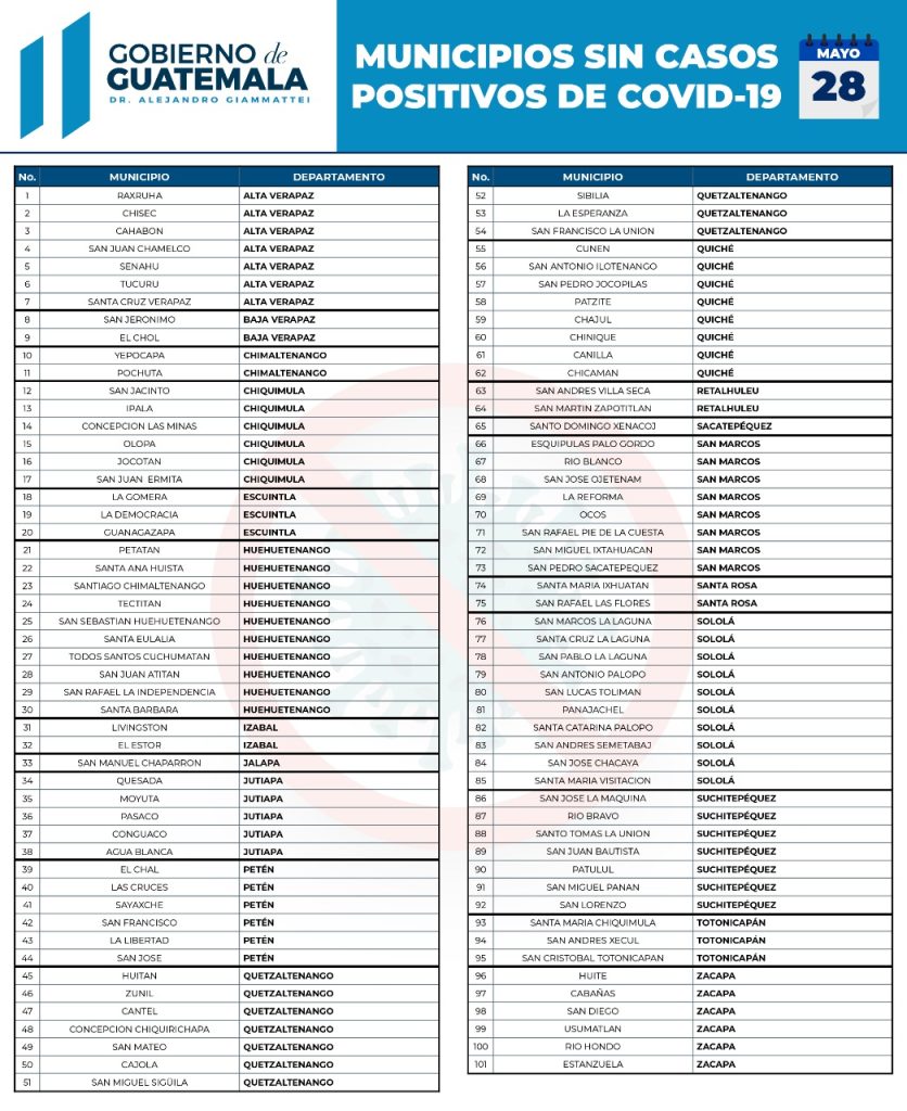 El funcionario afirmó que hasta este 28 de mayo había 101 municipios libres de coronavirus.