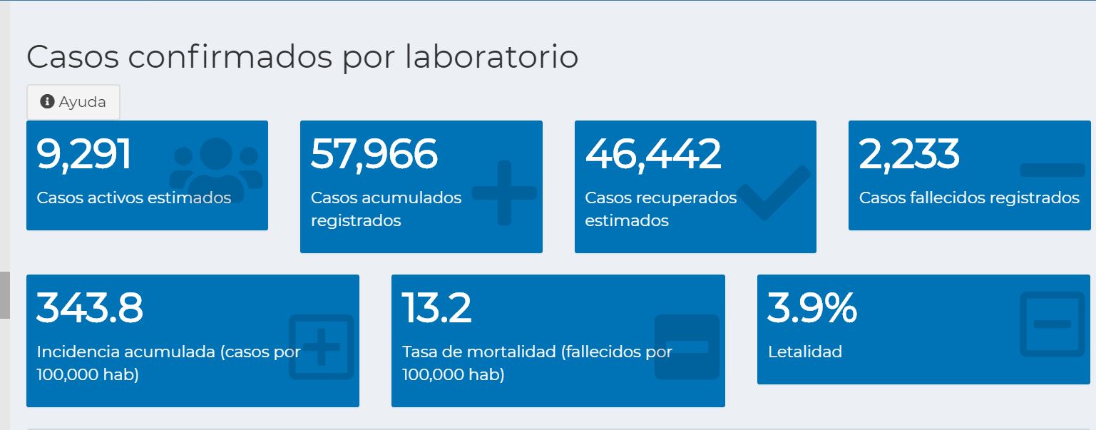 La cifra de casos recuperados estimados es de 46 mil 442; mientras que los casos activos estimados son de 9 mil 291.
