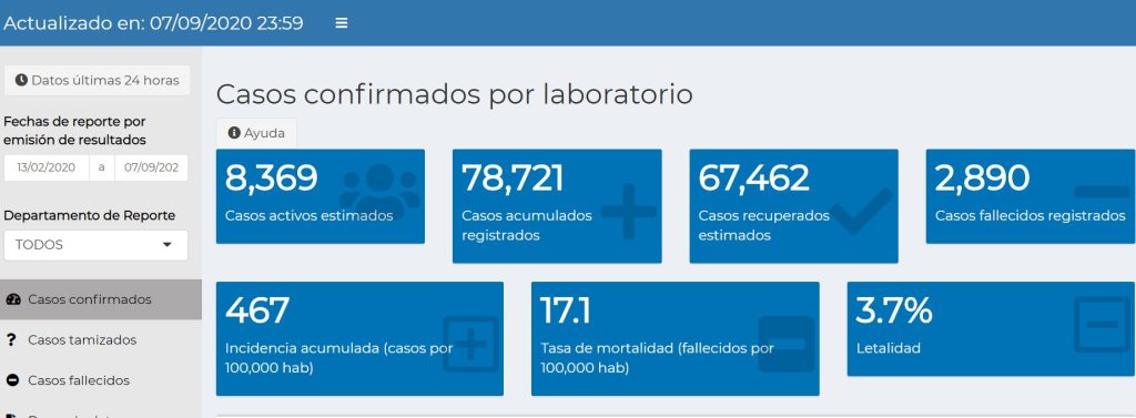 #Actualización| #MSPAS informa este 9 de septiembre de 2020 los casos confirmados por laboratorio en el tablero Situación #COVID19 en Guatemala.
